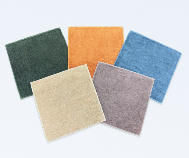 製造過程で必ず発生する「捨て耳(裁断くず)」を再利用したタオルです。資源の有効活用に貢献するのはもちろん、一枚ずつ違った模様や風合いを持った製品として、ほかにはない価値を実現しています。