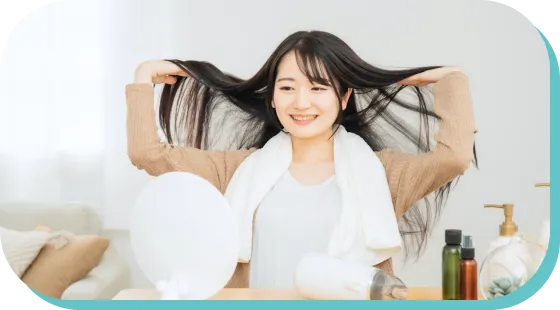 全身を拭いた後も衰えない吸水力で、髪の水分までしっかり拭き取ります。